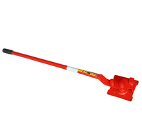 Главное преимущество данной модели - длинный рычаг, снижающий напряжение на руку рабочего при гибке арматуры, а также наличие дополнительного вертикального упора, за счет которого арматура при загибе имеет более плавный угол.