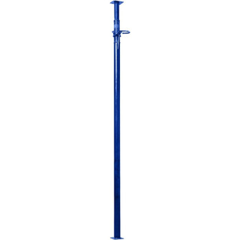 Телескопическая стойка для опалубки 4,5 м (домкрат) предназначена для поддержания горизонтальных щитов опалубки при возведении монолитных потолочных перекрытий, а также в качестве временной опоры при строительстве и ремонте. Изготовлена из двух стальных труб 60 и 48 мм с толщиной стенки металла 2,5 и 2 мм соответственно. Нижняя (более широкая) имеет опорную площадку для устойчивости. На нее накручивается опорная гайка и вставляется телескопическая труба меньшего диаметра с прорезями по всей длине. Фиксация нужной длины стойки выполняется крепёжной серьгой через прорези в насадке и отверстия в верхней трубе с опорой на гайку. Минимальная высота данной модели стойки – 2,96 метра, максимальная – 4,5 метра. Чем выше вы выдвигаете стойку, тем меньше на нее должна быть нагрузка. Точные значения для каждого положения высоты указаны в паспорте изделия. Для того, чтобы собрать опалубочную конструкцию перекрытия, кроме телескопической стойки-домкрата вам понадобятся: - ламинированная фанера (не менее 15 мм толщиной) - двутавровая деревянная балка - тренога (для обеспечения устойчивости стойки) - унивилка (для размещения двутавровой балки и фанеры) Порядок монтажа телескопических стоек на строительной площадке 1. На площадке, подготовленной в соответствии с ППР объекта, устанавливается тренога. При этом поворотные ноги располагаются так, чтобы обеспечить ее максимальную устойчивость с учетом конфигурации опорной поверхности. 2. Поднимают фиксатор треноги до упора, устанавливают телескопическую стойку и опускают фиксатор, который, скользя по наклонной трубе, зажимает стойку. 3. После установки телескопических стоек в треноги, все стойки под опалубку выравниваются по высоте и производится монтаж щитов опалубки перекрытий в следующем порядке: - продольная (нижняя) балка укладывается в унивилку; - поперечная балка или брус (верхняя) укладывается на продольную; - с помощью гайки стойки по уровню производится точная юстировка опалубочного стола; - после точной юстировки производится монтаж фанеры.
