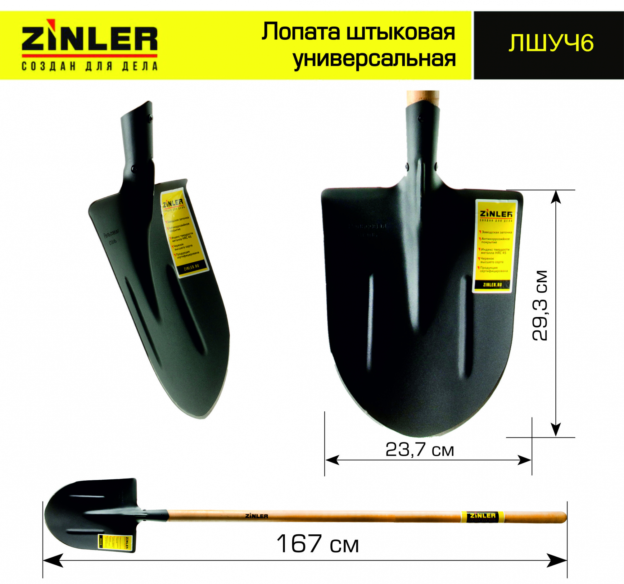 Лопата сделана из высокопрочной термообработанной стали. Более длинная тулейка с незапаянным швом максимально плотно прилегает к черенку, что исключает люфт при эксплуатации. Черенок лопаты не только сделан из прочных пород дерева, но и покрыт лаком, который делает его влаго- и износостойким. Ребра жесткости усиливают полотно в местах наибольших нагрузок. Покрытие антикоррозийным порошком увеличивает срок службы инструмента и дольше сохраняет его эстетический вид.