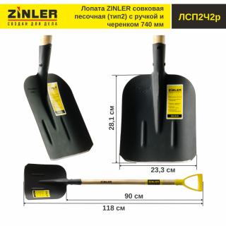 Лопата совковая песочная (тип 2) с деревянным черенком 740 мм и ручкой