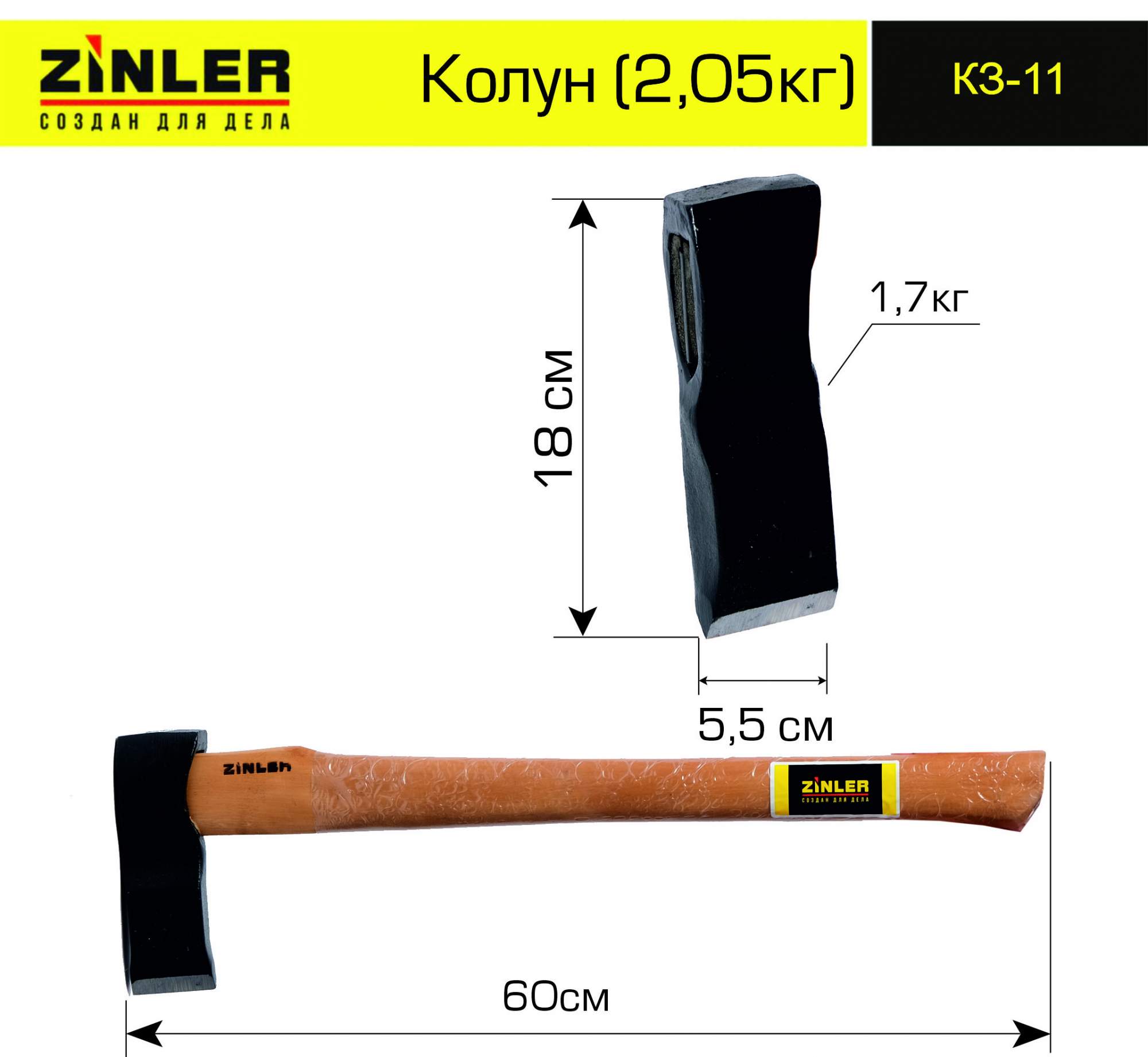 Колун ZINLER 1,7 кг в сборе (общий вес 2,05 кг)