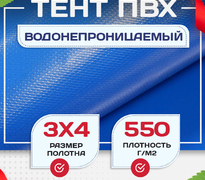 Тент ПВХ 550 грамм/м размером 3х4 метра и с люверсами каждые 0,5 метра синего цвета за счет своей плотности отличается повышенной износостойкостью и грязеустойчивостью. Может использоваться в критически высоких или низких температурах окружающей среды, при сильных ветровых нагрузках, длительных неблагоприятных погодных условиях.