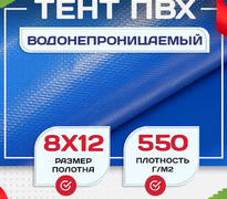Тент ПВХ 550 грамм/м размером 8х12 метров и с люверсами каждые 0,5 метра синего цвета за счет своей плотности отличается повышенной износостойкостью и грязеустойчивостью. Может использоваться в критически высоких или низких температурах окружающей среды, при сильных ветровых нагрузках, длительных неблагоприятных погодных условиях.