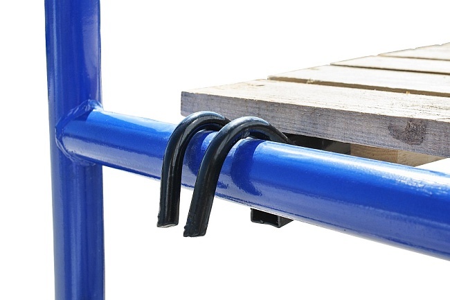 Имеет на концах приваренные крюки, которые надежно крепятся за раму лесов и обеспечивают устойчивость рабочего пространства.